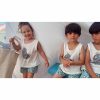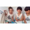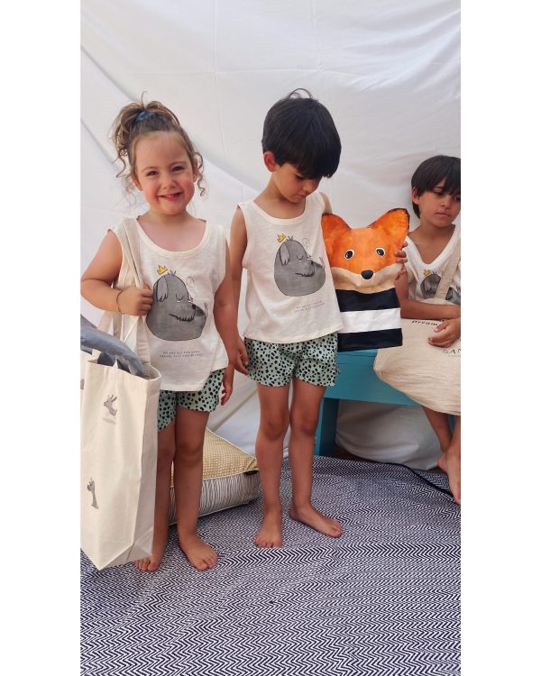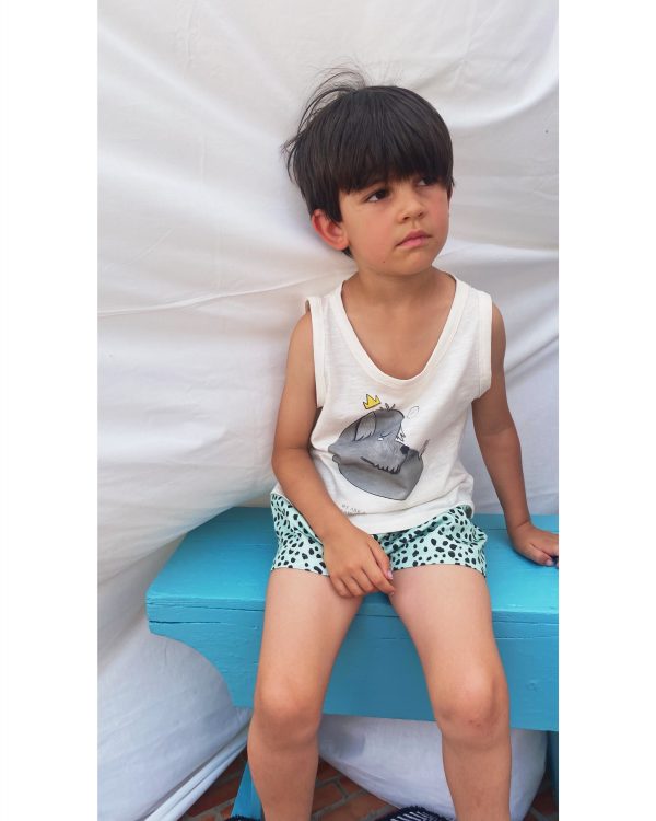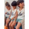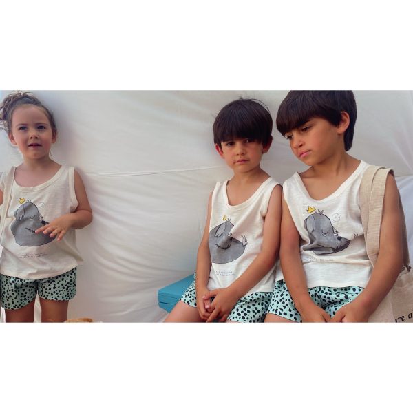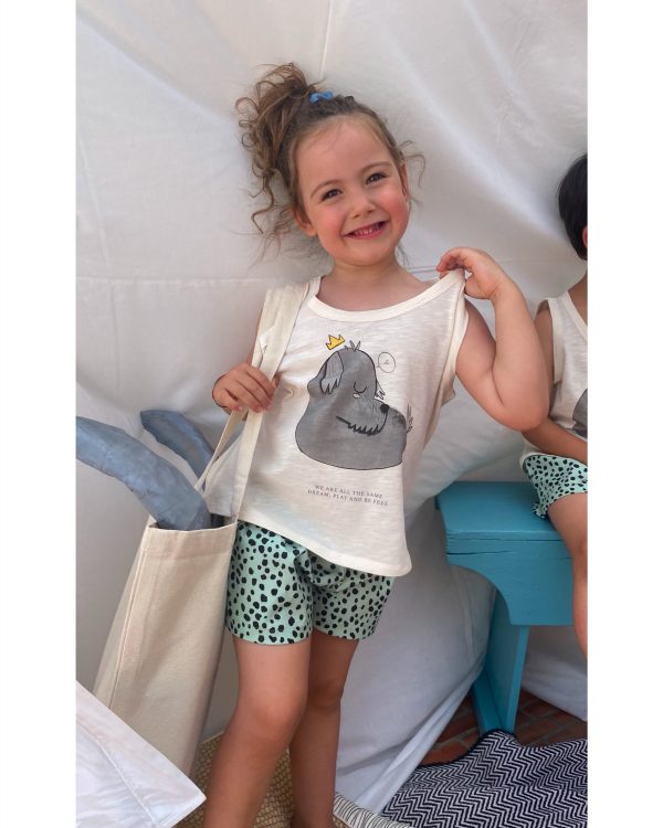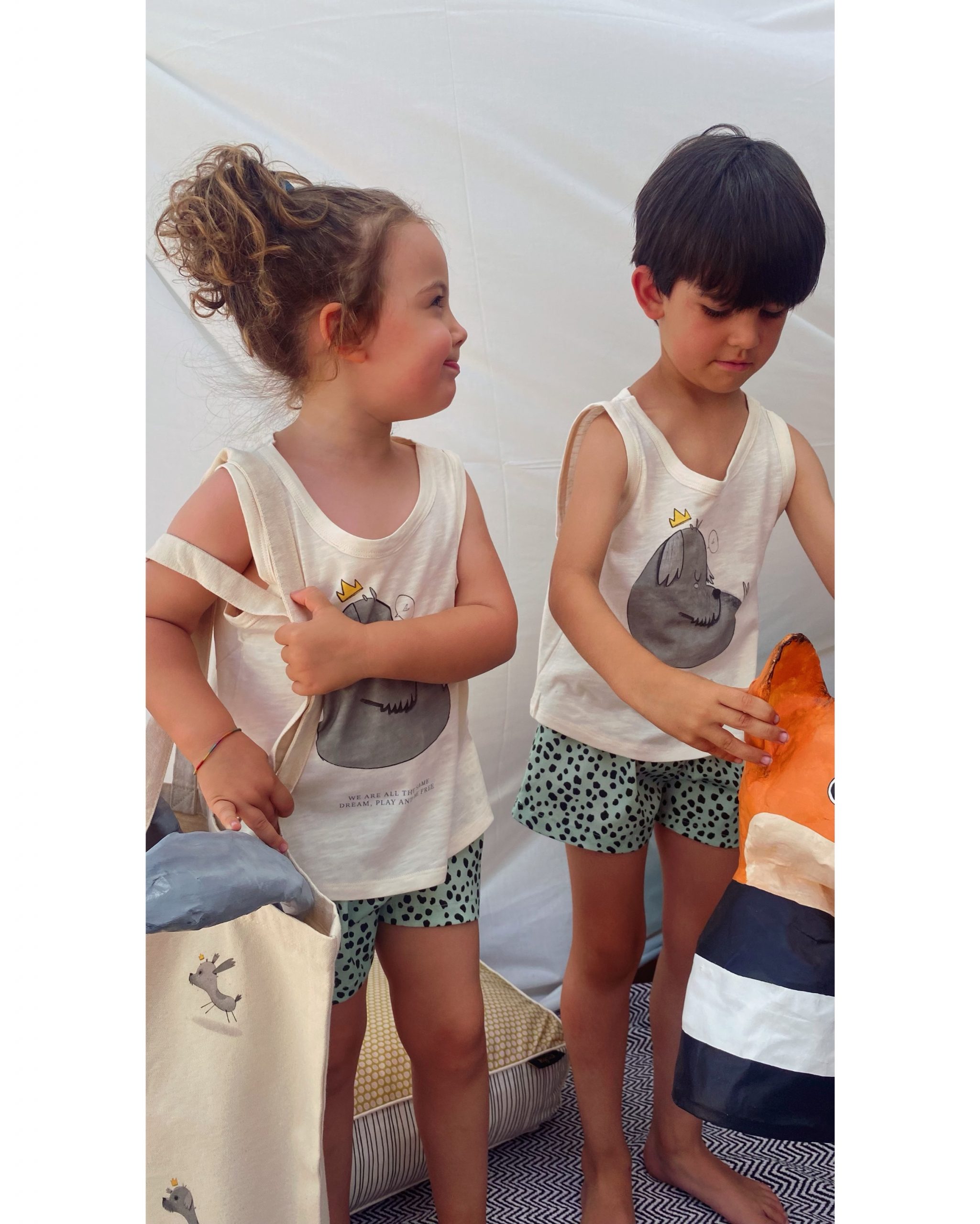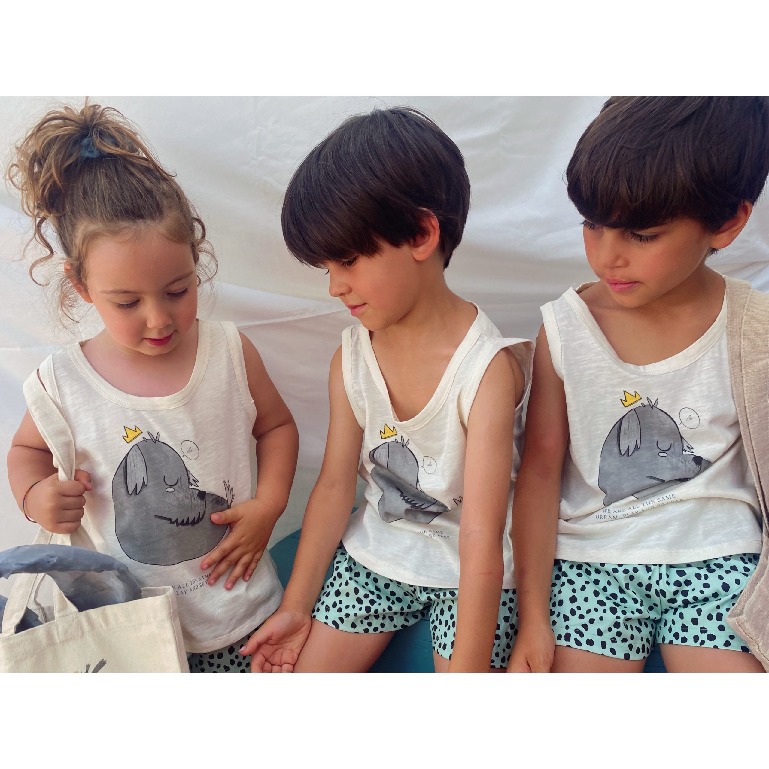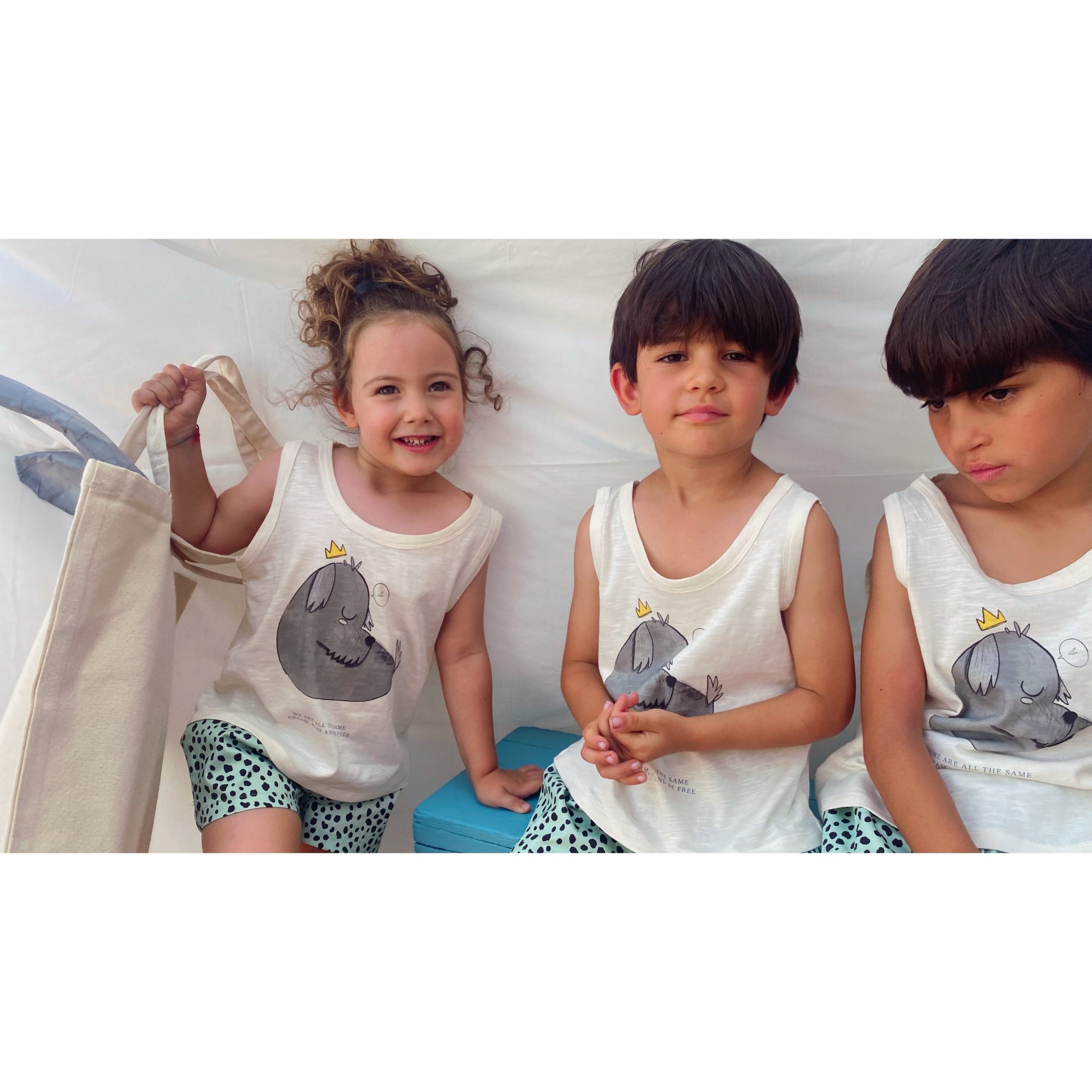 T-shirt sem mangas em 100% algodão, corte largo, com estampado frontal.